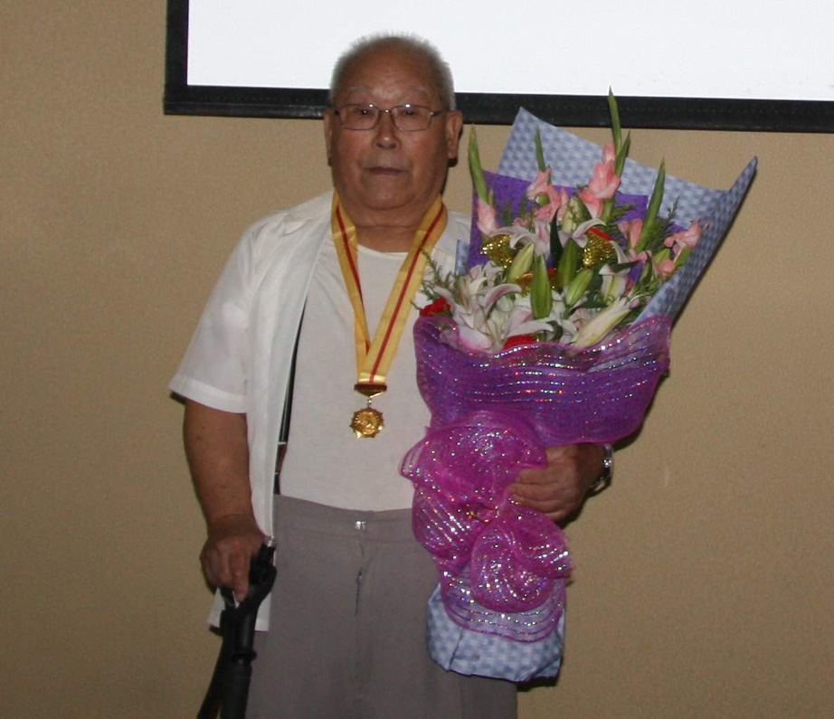 昨天一大早,沈開(kāi)龍和盛雪飛就上門(mén)將王玉昆和王安泰接到單位。幾位同事趕緊幫忙,攙扶著(zhù)兩位老人。公司專(zhuān)門(mén)為兩位老人開(kāi)了一場(chǎng)簡(jiǎn)短的座談會(huì )。公司黨委書(shū)記董恩和將抗日戰爭勝利70周年紀念章給兩位老人戴上。這是前兩天,董恩和去北京出差給帶回來(lái)的。前天,他們上門(mén)給行動(dòng)不便的陳國琦、韋云長(cháng)、濮滔源3位抗戰老兵送去了紀念章。